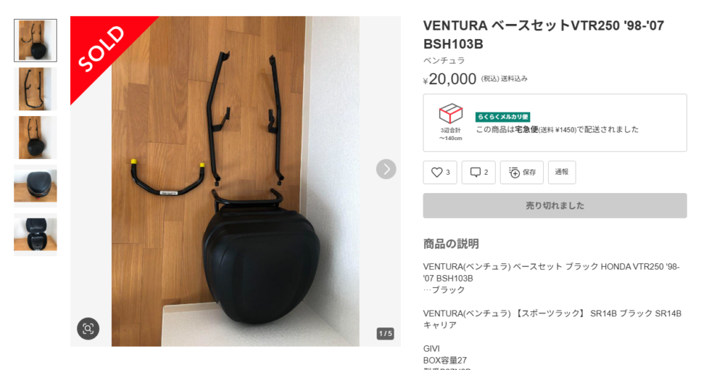 ここに含まれていないのとしてはバイクシートを送った時の送料を元払いで送った際の料金が含まれていないです。