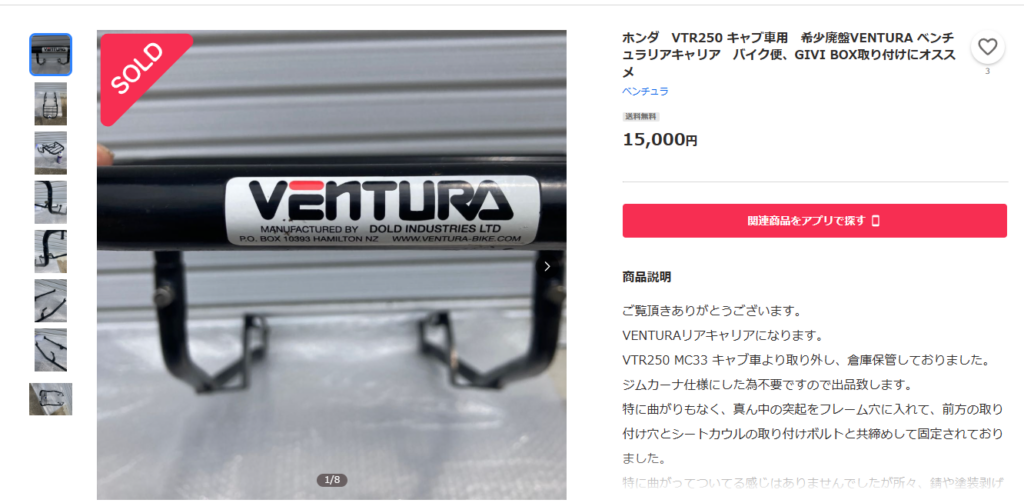 調べてみたらFI車向けのタンデムバーはいろんな会社が出しているようですが、キャブ車のVTR250向けには中々ないです。本当にない。
